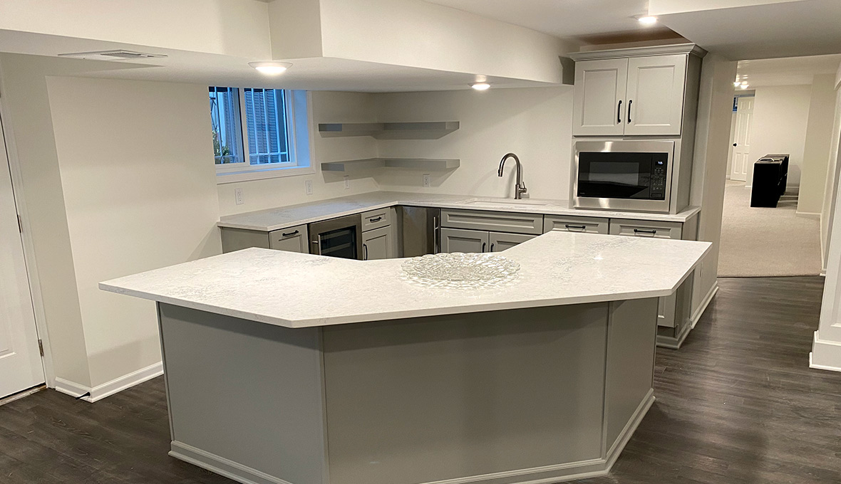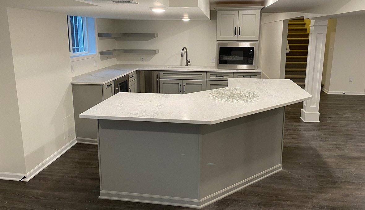 Troy’s favorite feature of the basement renovation is the kitchen, and not only because of the high-quality finish... The design called for relocating the kitchen to the spacious recreation room, which massively improved the home’s functionality and flow.