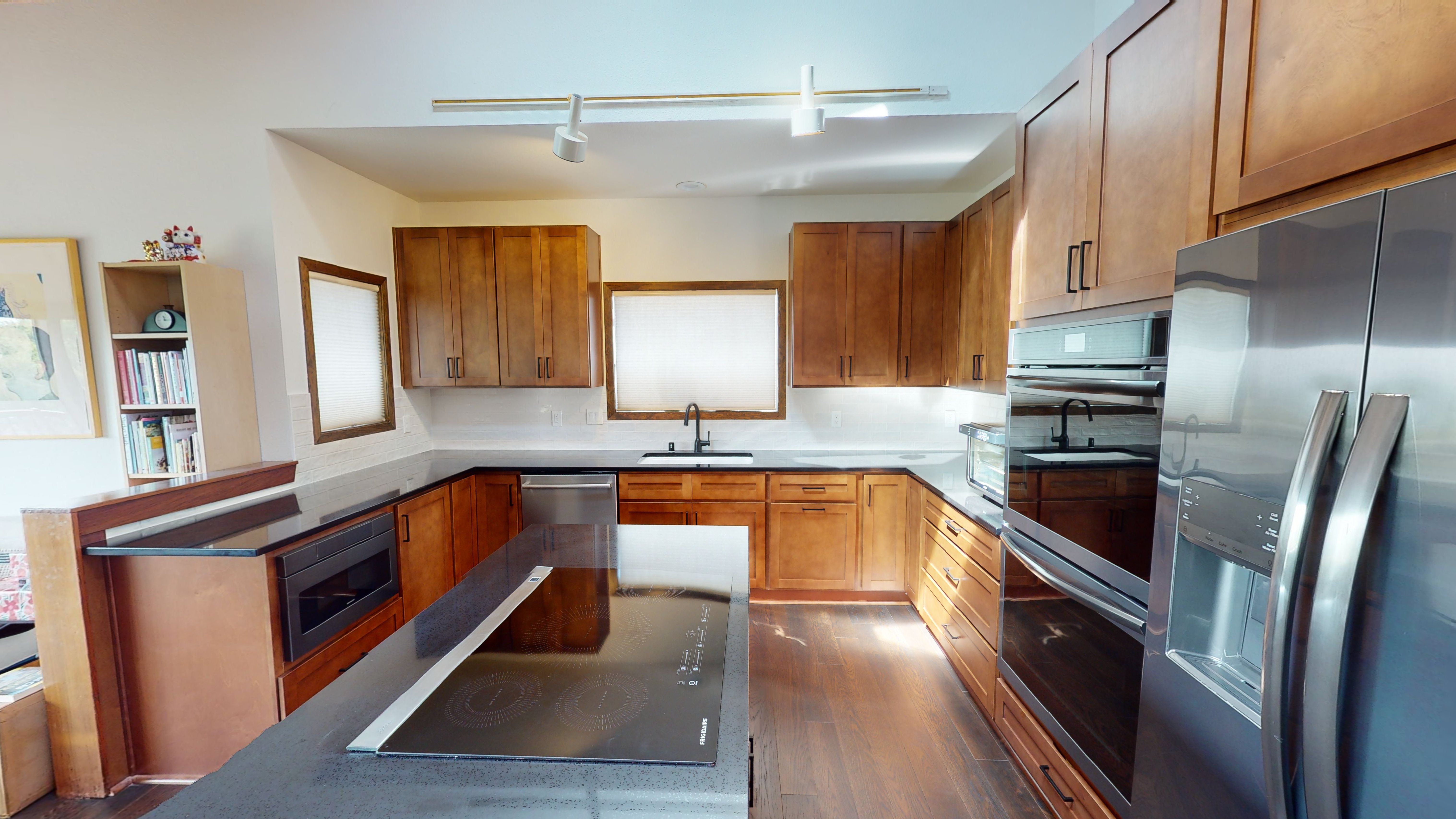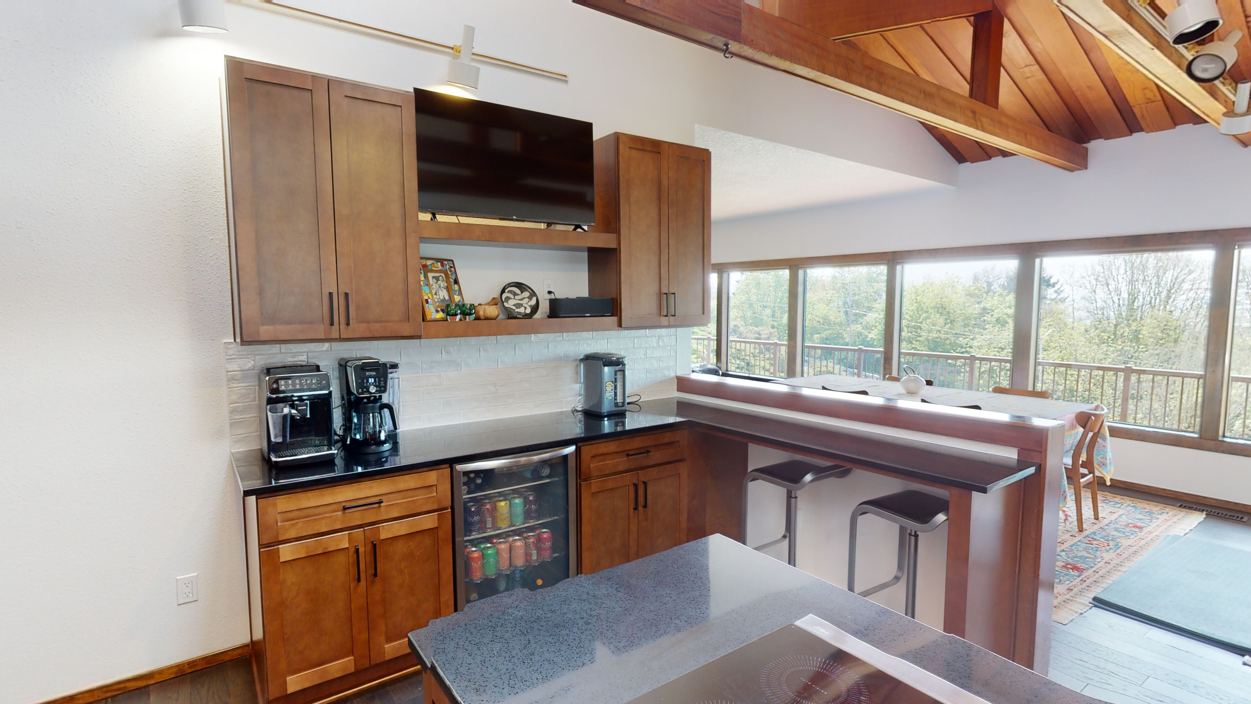 An aspect of the homeowners previous kitchen was a wall that, to them, felt like wasted space. With this remodel they wanted to take advantage of additional cabinets and countertops for more storage, and to also have a dedicated coffee bar, which also included an under the counter mini beverage fridge. Textured white subway tile was selected for the backsplash pulling this contemporary kitchen all together.