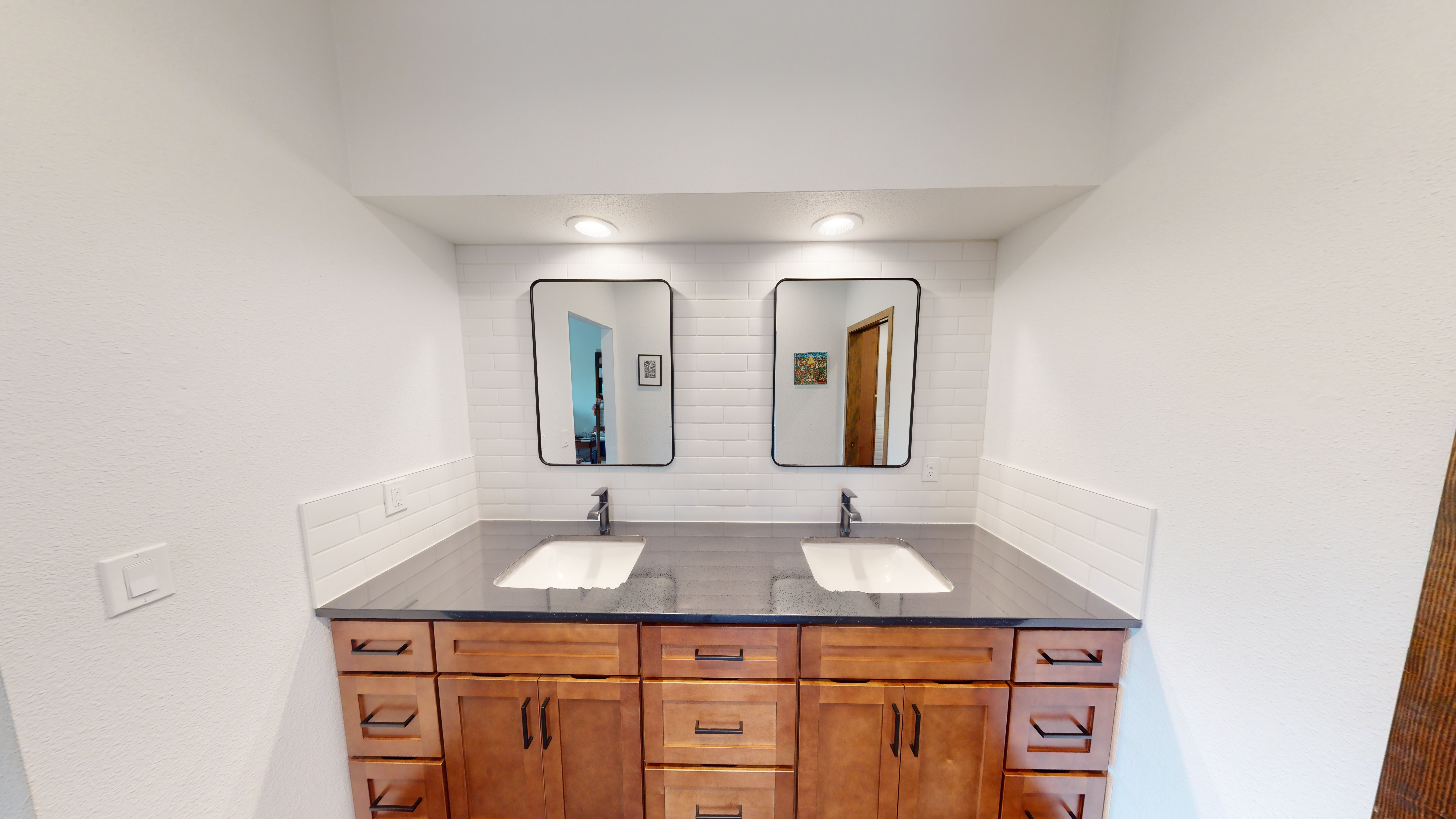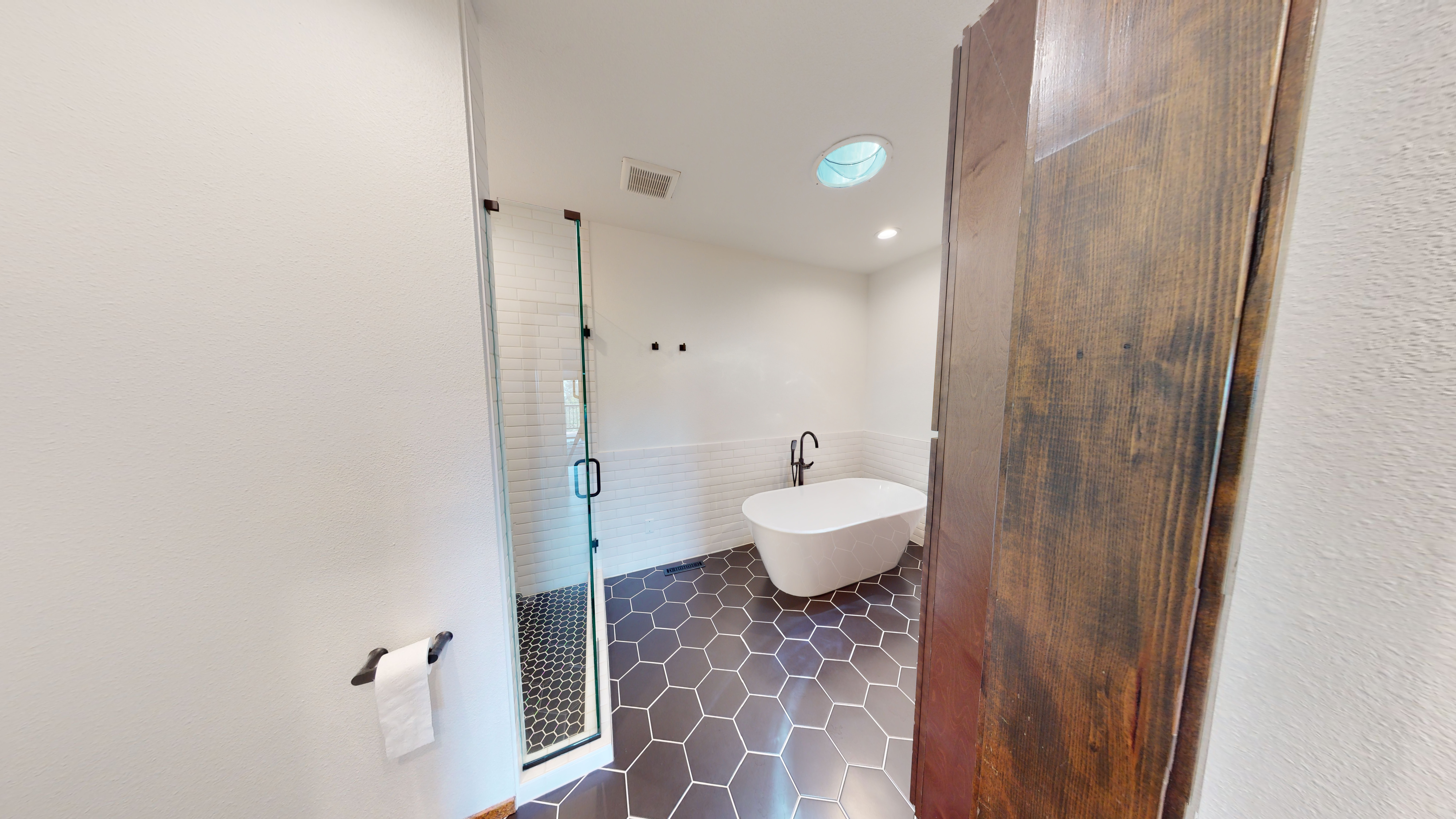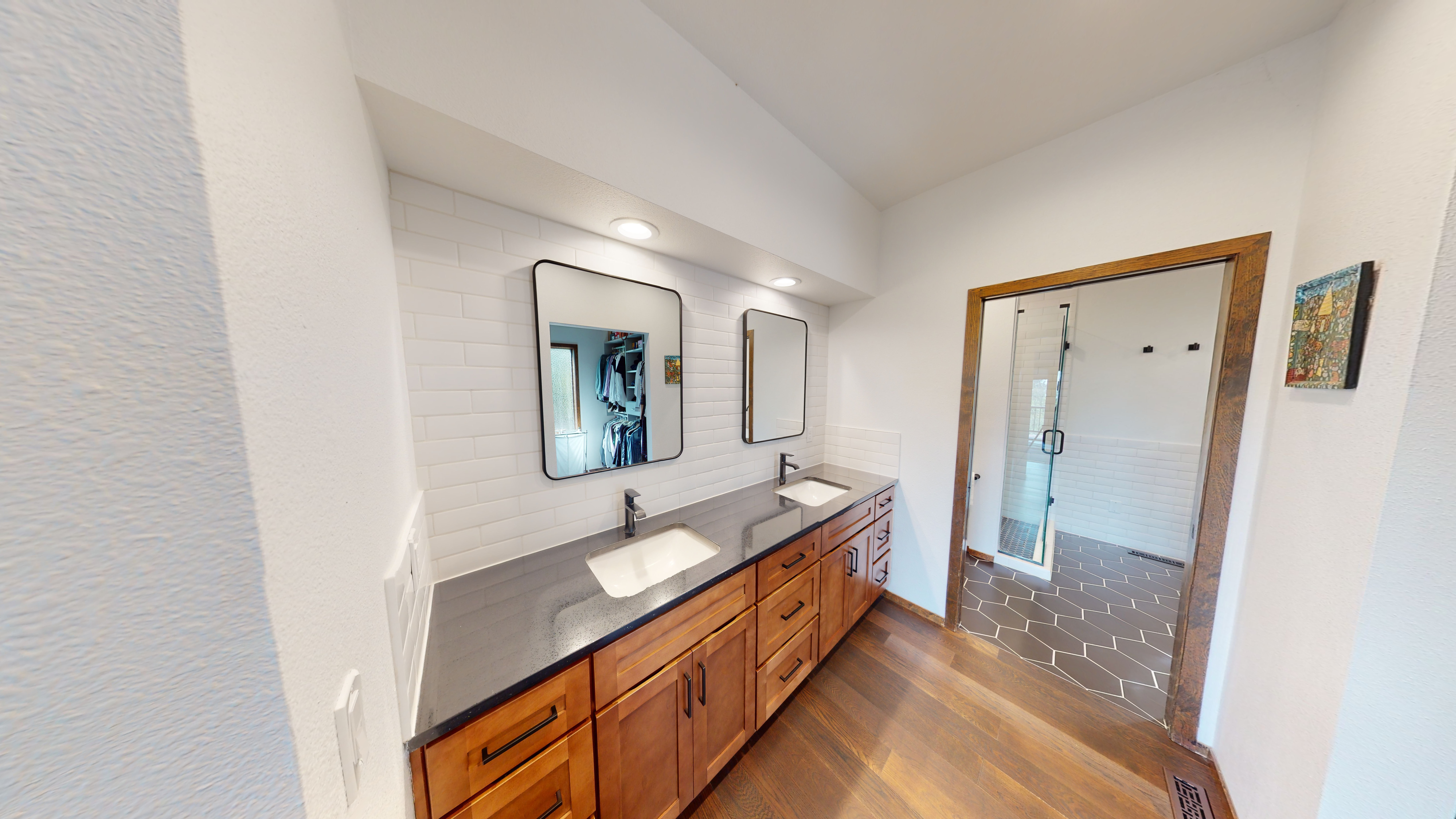 Similar aesthetics was the focus for the master bathroom. The focus areas for the bathroom were the shower, tub and more storage. The old shower was small and cramped, after the remodel the shower is a luxurious walk-in shower with built-in storage of a shower-niche.