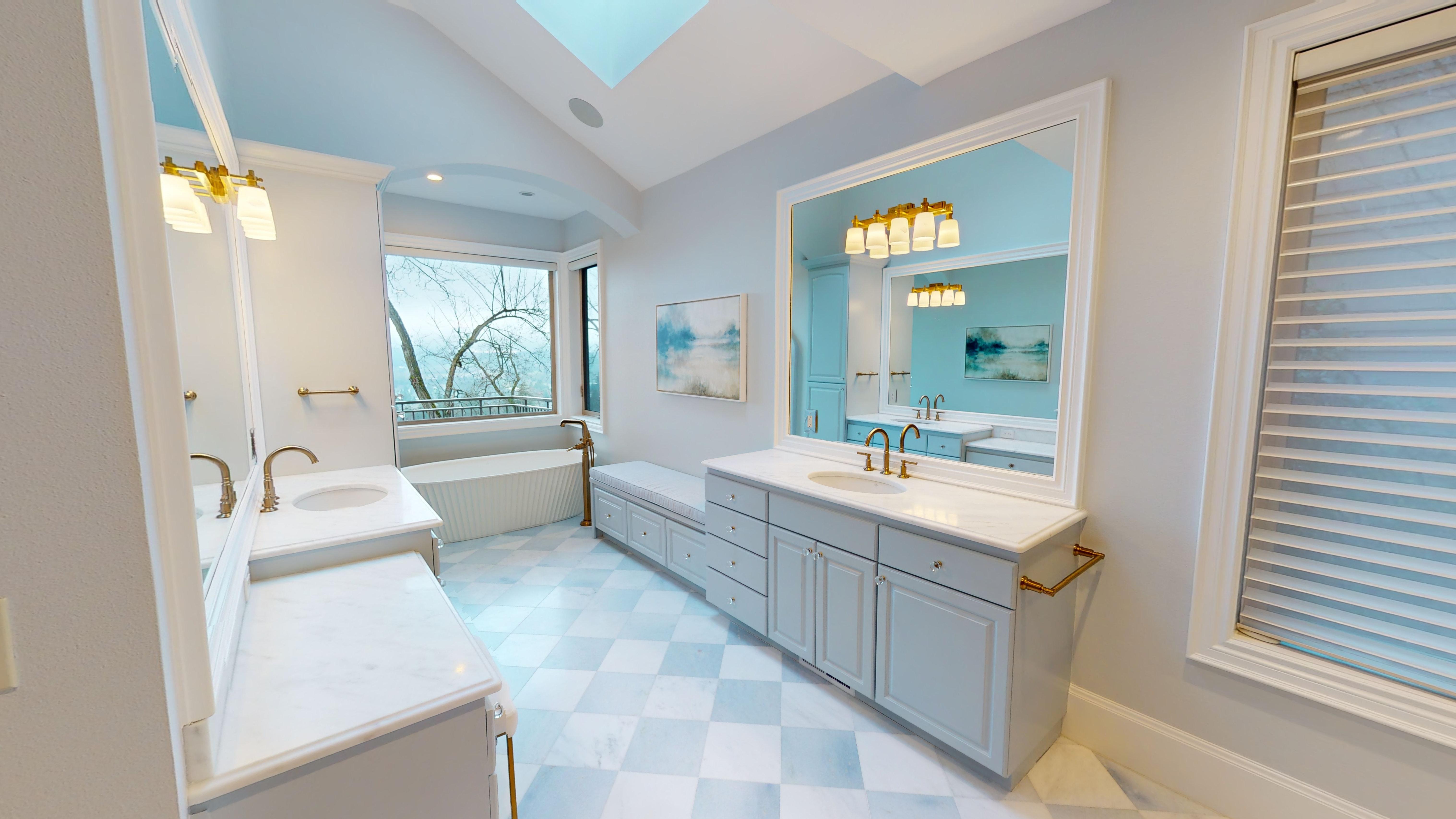 This beautiful home, located in Lake Oswego was built in the early 2000’s, and the homeowners wanted to update their master bathroom along with the laundry room. The style pre-renovation was very 90’s and dated. This project was very design-driven, a lot of thought was given to the overall look and feel of the space, and resulted in a very comprehensive search for the right tile and plumbing fixtures. Once the design was finalized, the plan in place, and all necessary permits obtained, the renovation began!