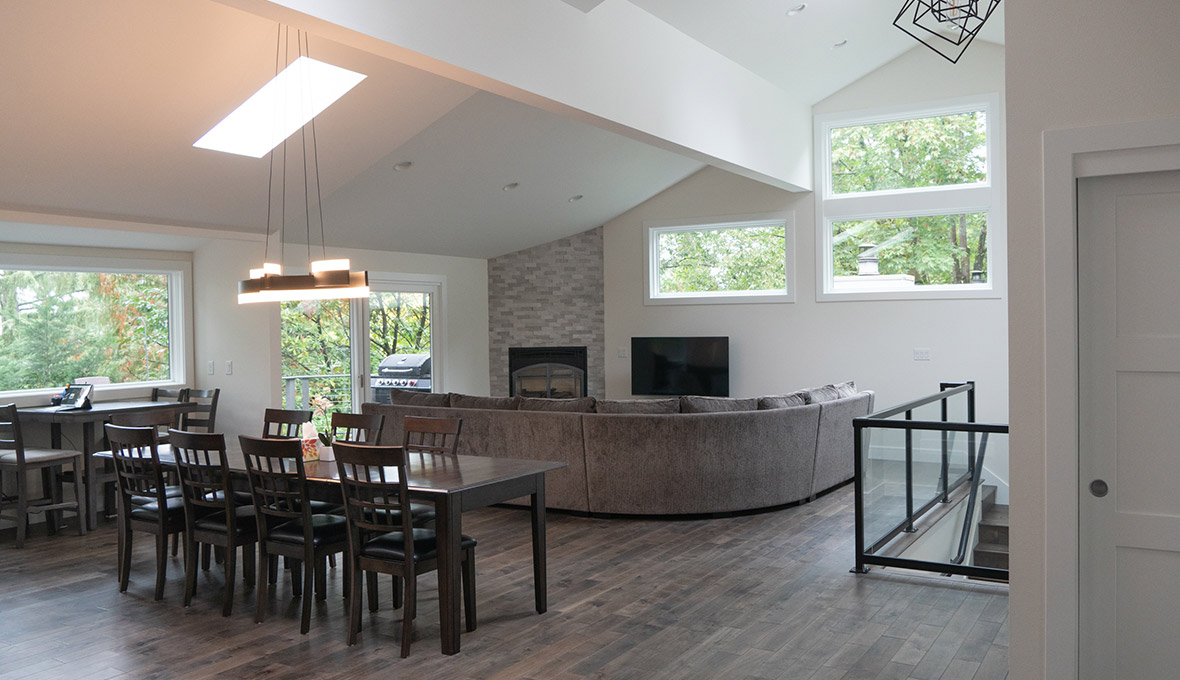 Interiors of the 1990s often seemed to be an ode to cherry wood, but the new owner of this two-storey home wasn’t a fan of the look. Having recently purchased the property, he wanted to stamp his style on it with an open concept main floor, reconfigured lower level, and a modern, minimalist design.