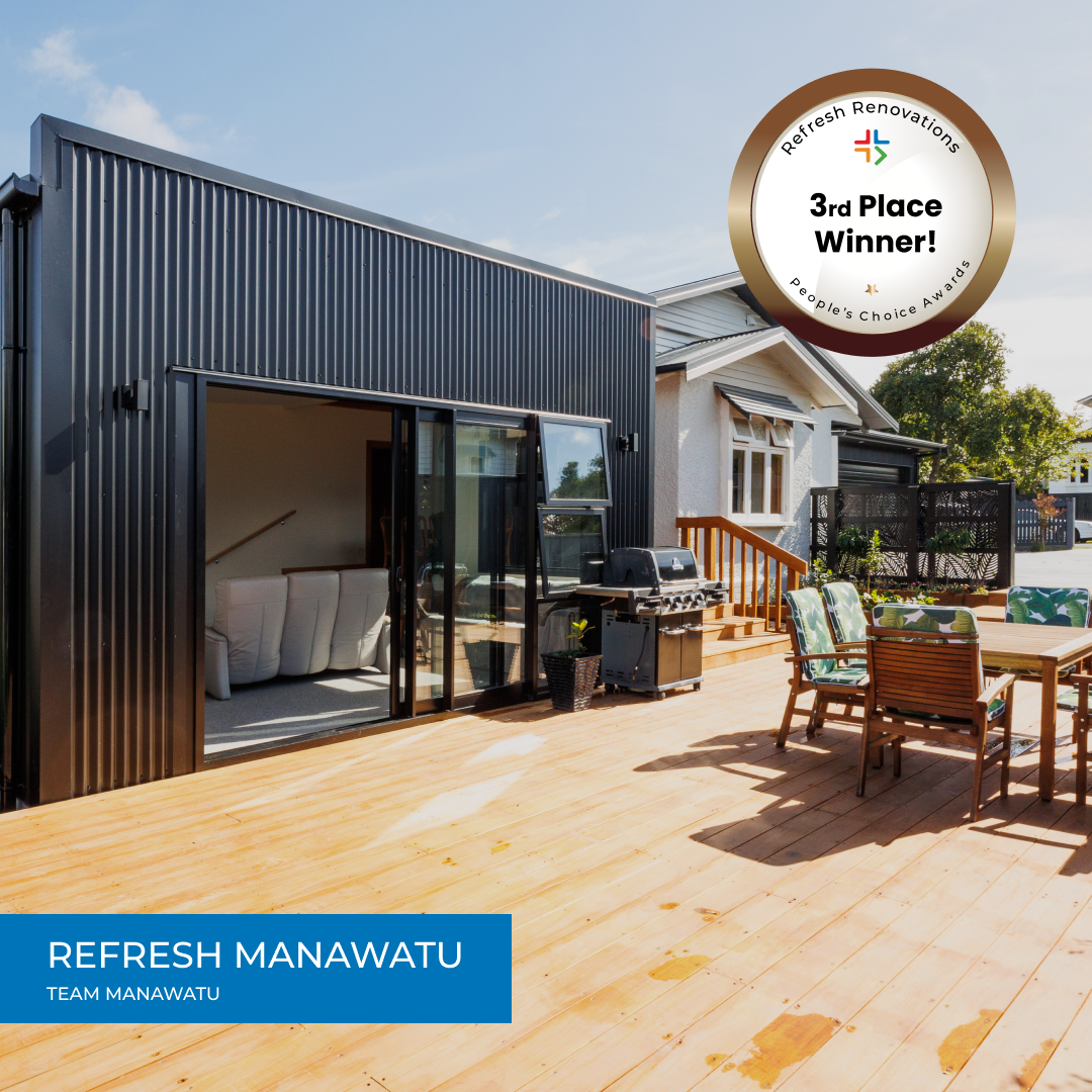 This growing family needed extra space, so they called on the team at Refresh Renovations Manawatu to transform their 1930s bungalow. A sleek extension created a new bedroom, living room and bathroom, and a large new double garage was installed.